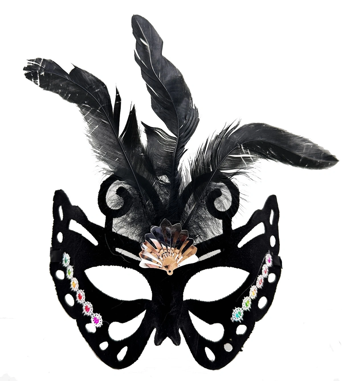 Siyah Renk Siyah Süet Kaplama Kelebek Model Parti Balo Maskesi, balolar, maskeli partiler, özel günler gibi özel etkinliklerde zarif ve gizemli bir kelebek güzelliğiyle göz kamaştırmak isteyenler için mükemmel bir seçimdir. Yumuşak siyah süet kaplaması ve zarif kelebek tasarımı ile bu maske sizi partinin en şık ve dikkat çekici konuğu yapacak.