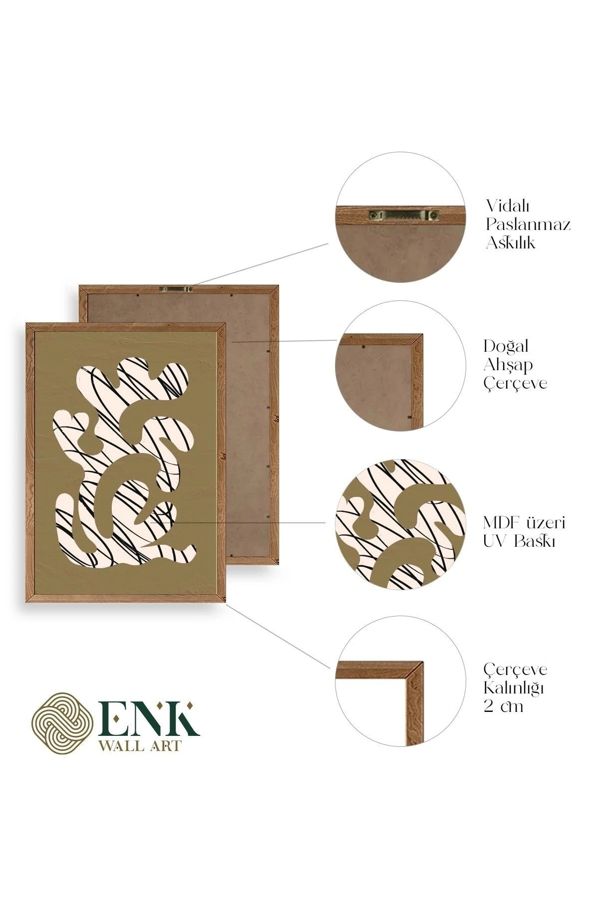 Tablolarımız gerçek ahşap çerçevelidir, çerçeve görünümlü değildir. ; ENK Wall Art Olarak Ahşap Çerçeveli Tablolar Üretiyoruz. ; Tablolarımız tek parça, 3 Parça, 5 Parça ve daha çok kategoride tasarımcılarımız tarafından ev ve ofisleriniz duvarları süslemek için tasarlanmaktadır. ; Ahşap Çerçeveli Duvar Tabloları ile yaşam alanlarınıza yepyeni bir görünüm kazandırın. ; Yıllarca dayanacağından emin olduğumuz sağlam çerçevelere sahip yüksek kaliteli ahşaptan üretilmiştir. ; İster bir köşeyi süslemek isteyin, ister evinizi yenilemek , bu ahşap tablolar herhangi bir yaşam alanına stil ve işlev getirecektir. ; Duvara kolay bir şekilde monte edilir. ; Uzun ömürlü kullanım için sağlam ahşap çerçeveden yapılmış, dayanıklı ve güçlü. ; Duvara monte edilebilir tasarımı, yaşam alanlarında veya yatak odalarında duvara kolayca asılmasını sağlar. ; Pürüzsüz üst yüzeyi temiz kalmayı kolaylaştırır. ; Herhangi bir stile uyacak şekilde çeşitli renklerde gelir. ; Kolay yeniden düzenleme için hafif ve portatif. ; Küçük oturma odaları veya dar alanlar için mükemmel boyut. ; Eve taşınma hediyesi olarak idealdir. ; Herhangi bir evin dekorunu süslemek için harika bir yol. ; Herhangi bir modern veya çağdaş iç tasarıma mükemmel bir katkı. ; Tablo içi 3 mm mdf (ahşap) malzeme üzeri uv baskıdır. ; Renkler canlı ve solma yapmaz. ; Kırılma, bükülme ve çizilmeye karşı dayanıklıdır.;