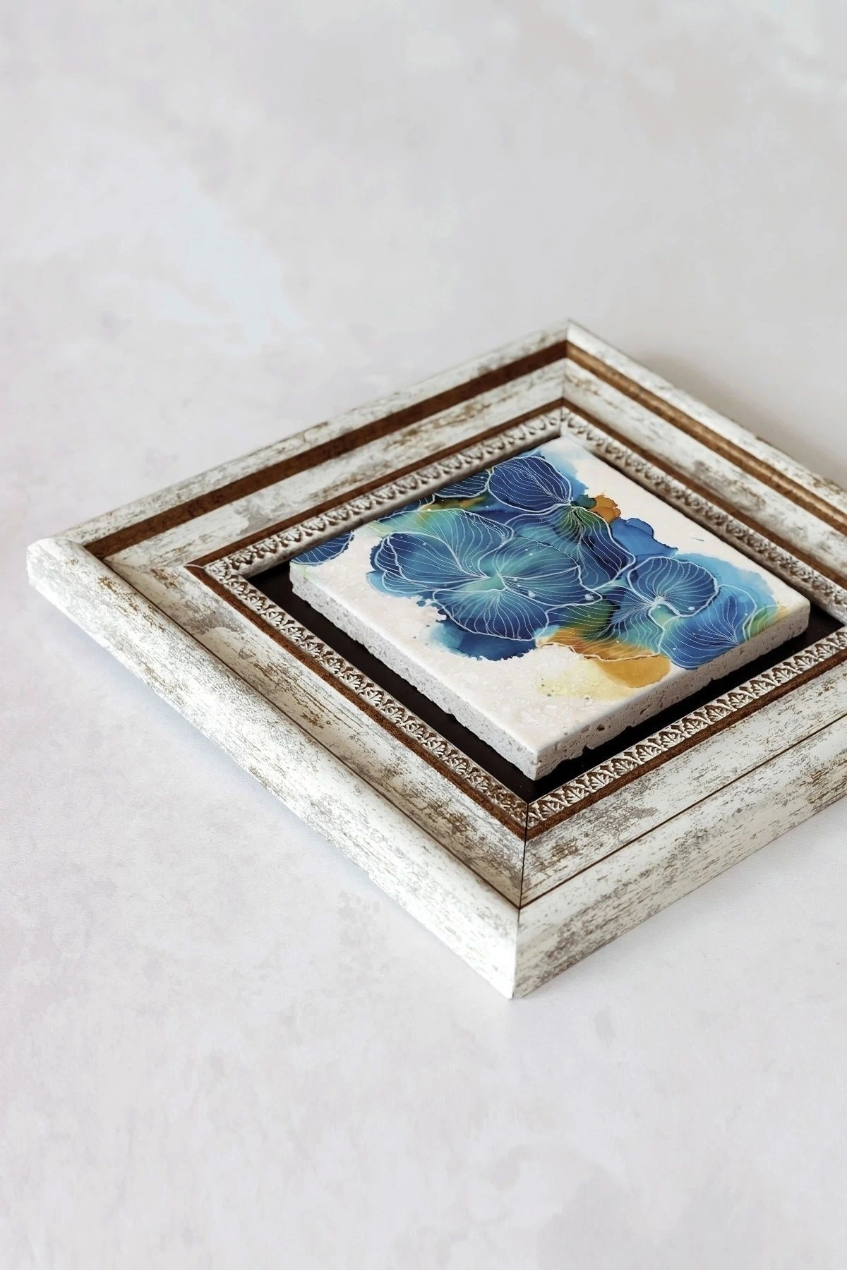 Ürün hakkında: Ölçüleri: 20 cm x 20 cm'dir. ; Kalınlık :2,5 cm'dir. ; Ürünün arka tarafında askı aparatı bulunmaktadır. ; Kullanılan çerçeveler yüksek kaliteli, eskitme görünümlü kompozit malzemeden üretilmiştir. ; Taşların yüzeyindeki baskı teknolojisi özel olup sağlığa hiçbir zararı yoktur. ; Kullanılan malzeme dağdan çıkan gerçek taş oldugu için yüzeyinde belli oranda gözenek bulunması ve renginin krem renginin tonlarını barındırması normaldir kimyasal malzeme teması Yüzey deformasyona maruz kalabilir. ; Nemli bezle silinerek temizlenebilir. ; Isıya, suya ve neme dayanıklıdır. ; Kutu içeriği: Orijinal kutu içerisinde 1 adet çerçeveli taş duvar dekoru. ; 1 adet çerçeveli duvar dekoru ağırlığı: 250 gr çerçeve askısı ile duvara montajı yapılabilir.;
