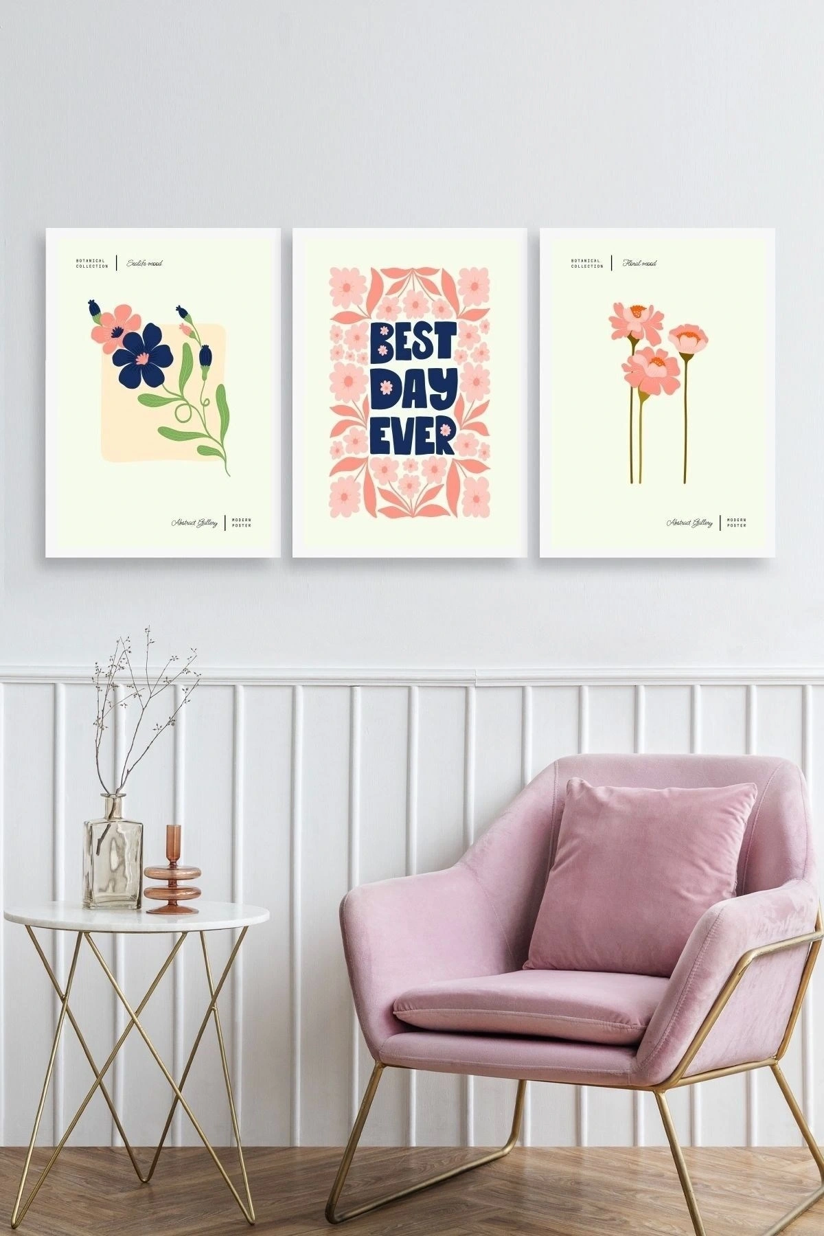 Soyut Üçlü Ahşap Çerçeveli Tablo 50 x 70