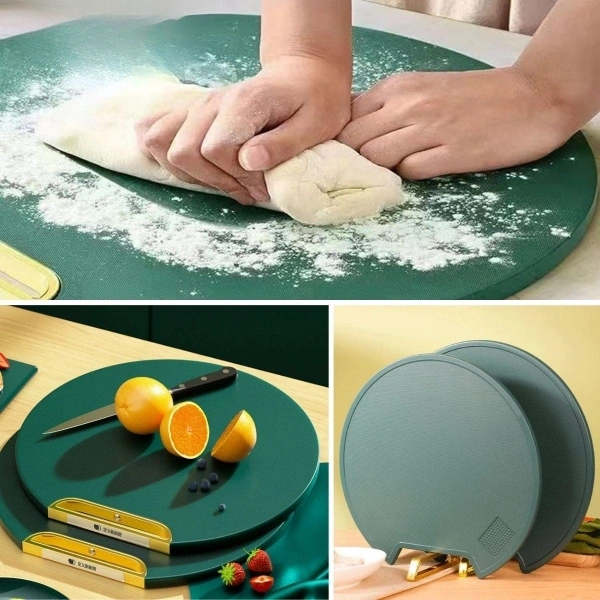 STANDLI KESİM PANOSUÜrün ÖzellikleriStandlı kesim panosu, mutfakta sebze, meyve, et, balık ve ekmek gibi farklı gıdaların doğranması için pratik ve güvenli bir kullanım sunar. Dayanıklı ve kaliteli malzemeden üretilmiş yapısı sayesinde bıçak darbelerine karşı dirençlidir ve uzun süre formunu korur. Standlı tasarımı, kesim panosunun mutfakta düzenli bir şekilde saklanmasını sağlar ve kullanım sırasında kolay erişim imkânı sunar. Farklı gıdalar için ayrı ayrı kullanılabilmesi, çapraz bulaşma riskini azaltarak daha hijyenik bir mutfak ortamı oluşturur. Düz ve geniş yüzeyi, rahat kesim yapmaya yardımcı olurken dengeli yapısı kaymayı minimum seviyeye indirir. Kullanım sonrası kolayca temizlenebilir ve hem elde yıkamaya hem de bulaşık makinesinde yıkamaya uygundur. Fonksiyonel tasarımı sayesinde mutfakta hem düzen hem de kullanım kolaylığı sağlar.Paket İçeriği1 adet standlı kesim panosu