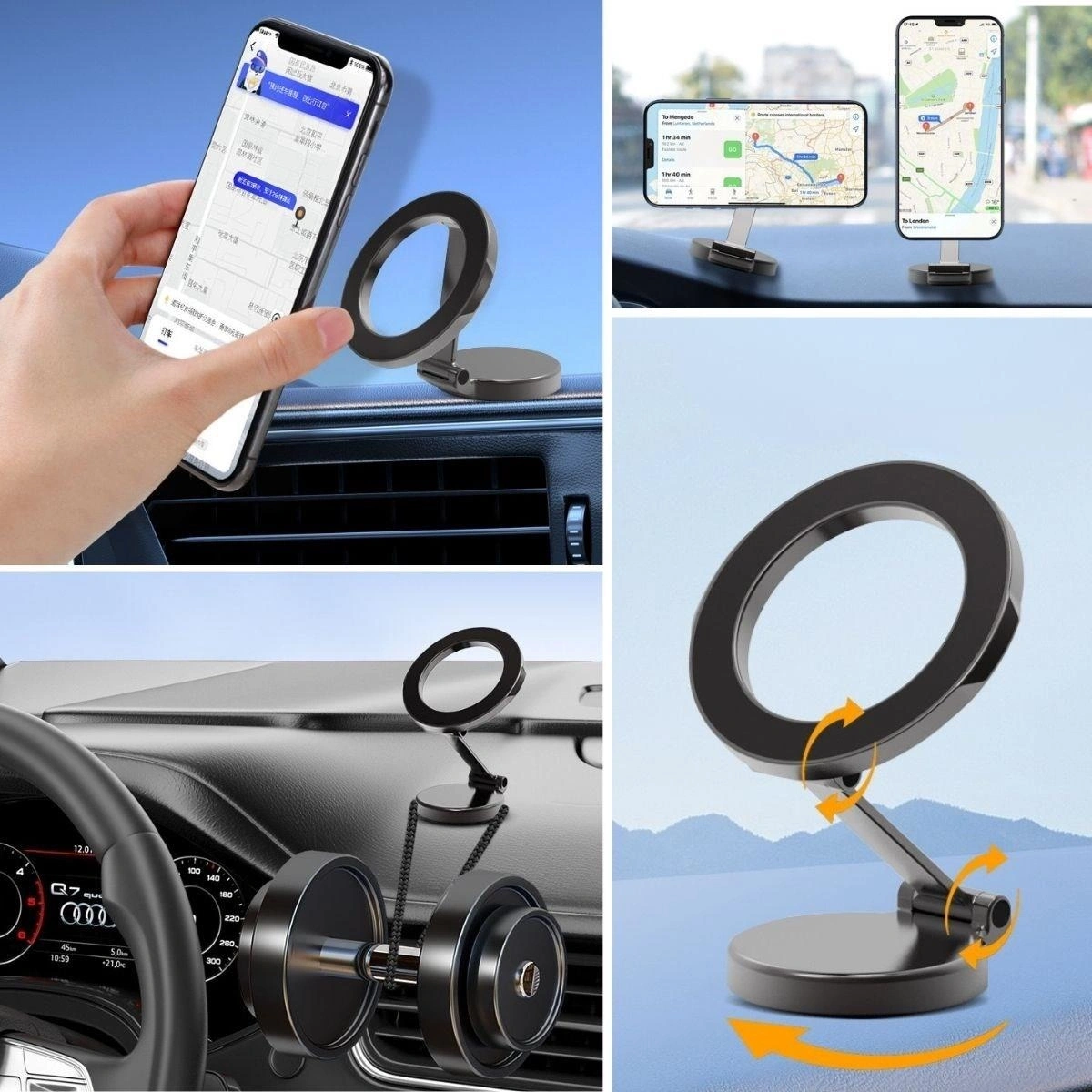 • 360 Derece Dönen Başlık: Telefonunuzu istediğiniz açıya göre ayarlayabilir, yatay veya dikey modda kullanabilirsiniz. Bu özellikle navigasyon kullanımı için idealdir.