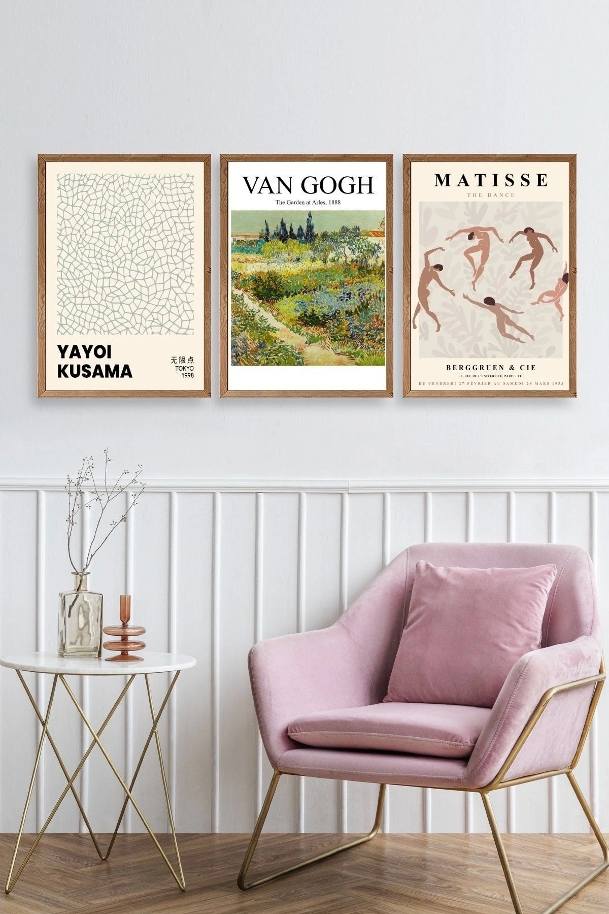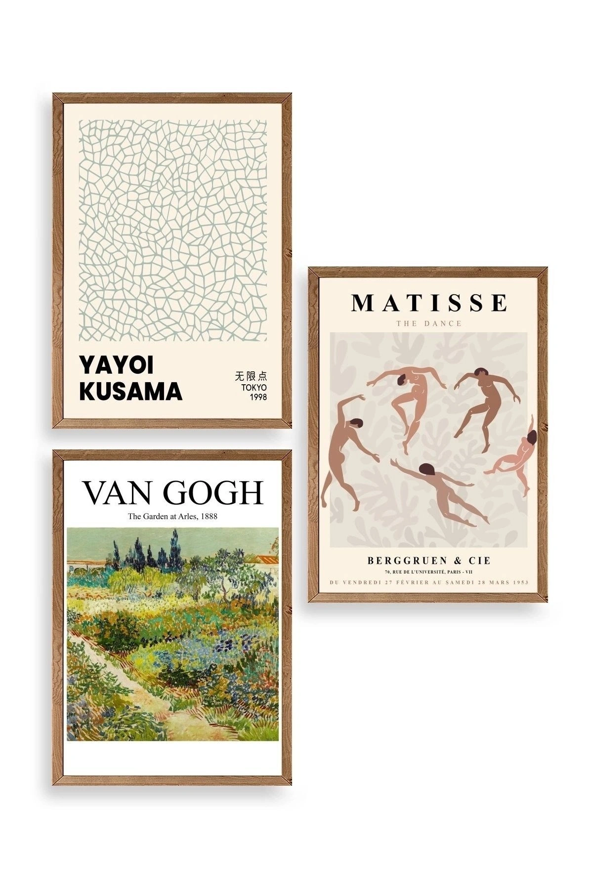 Ünlü Tablolar Üçlü Ahşap Çerçeveli Tablo 23 x 30