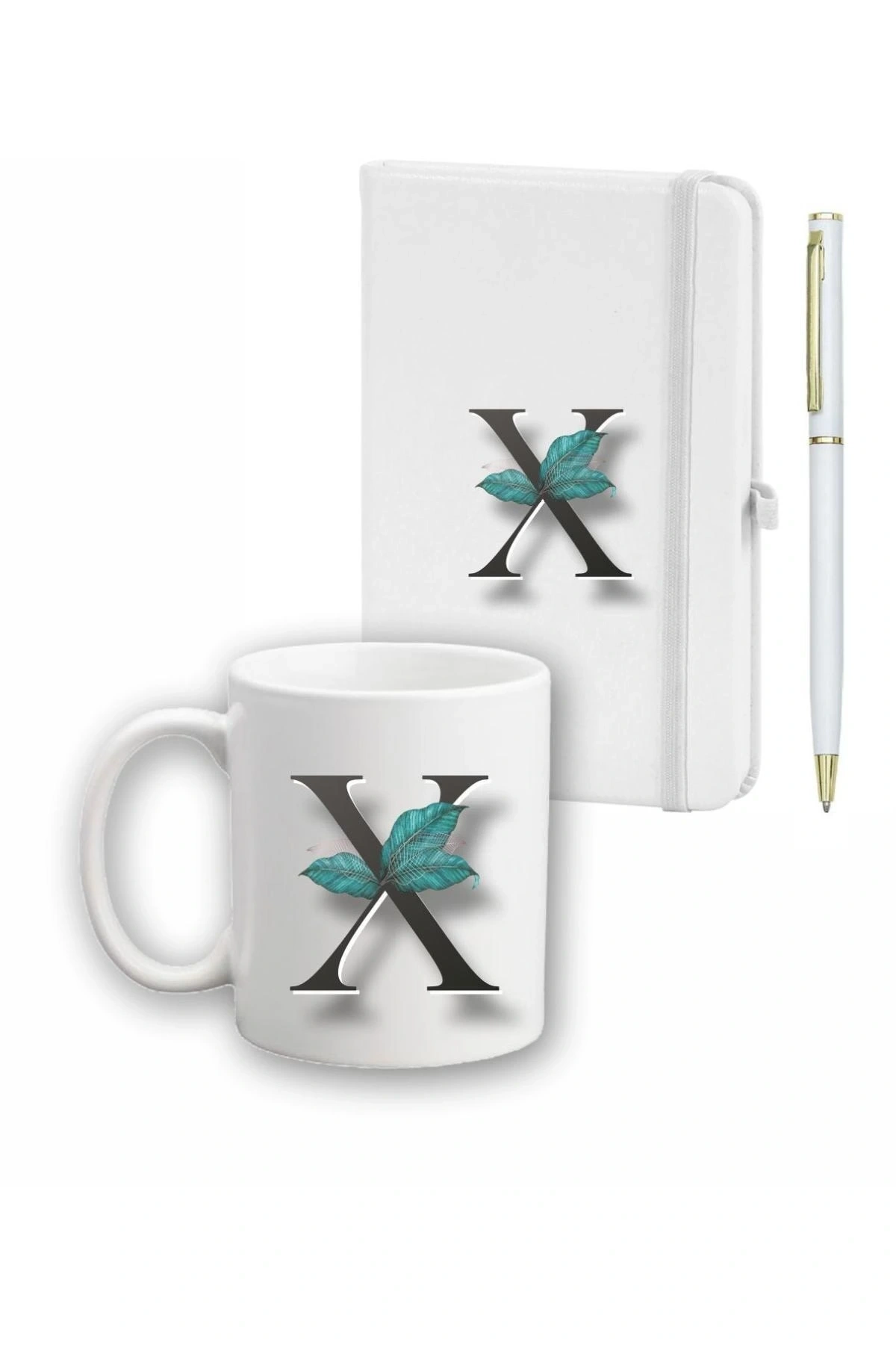 Yaprak Desen Ajanda Kupa ve Kalem Seti