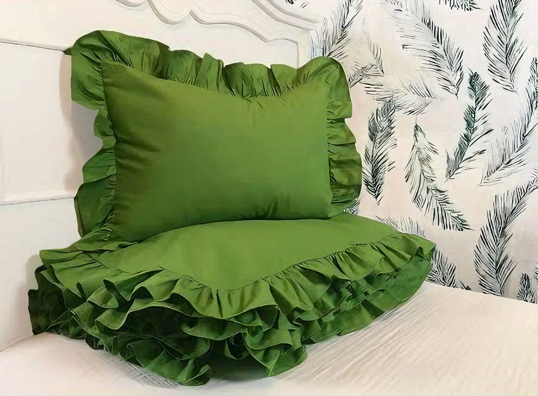 Yeşil fırfırlı çift kişilik nevresim takımı