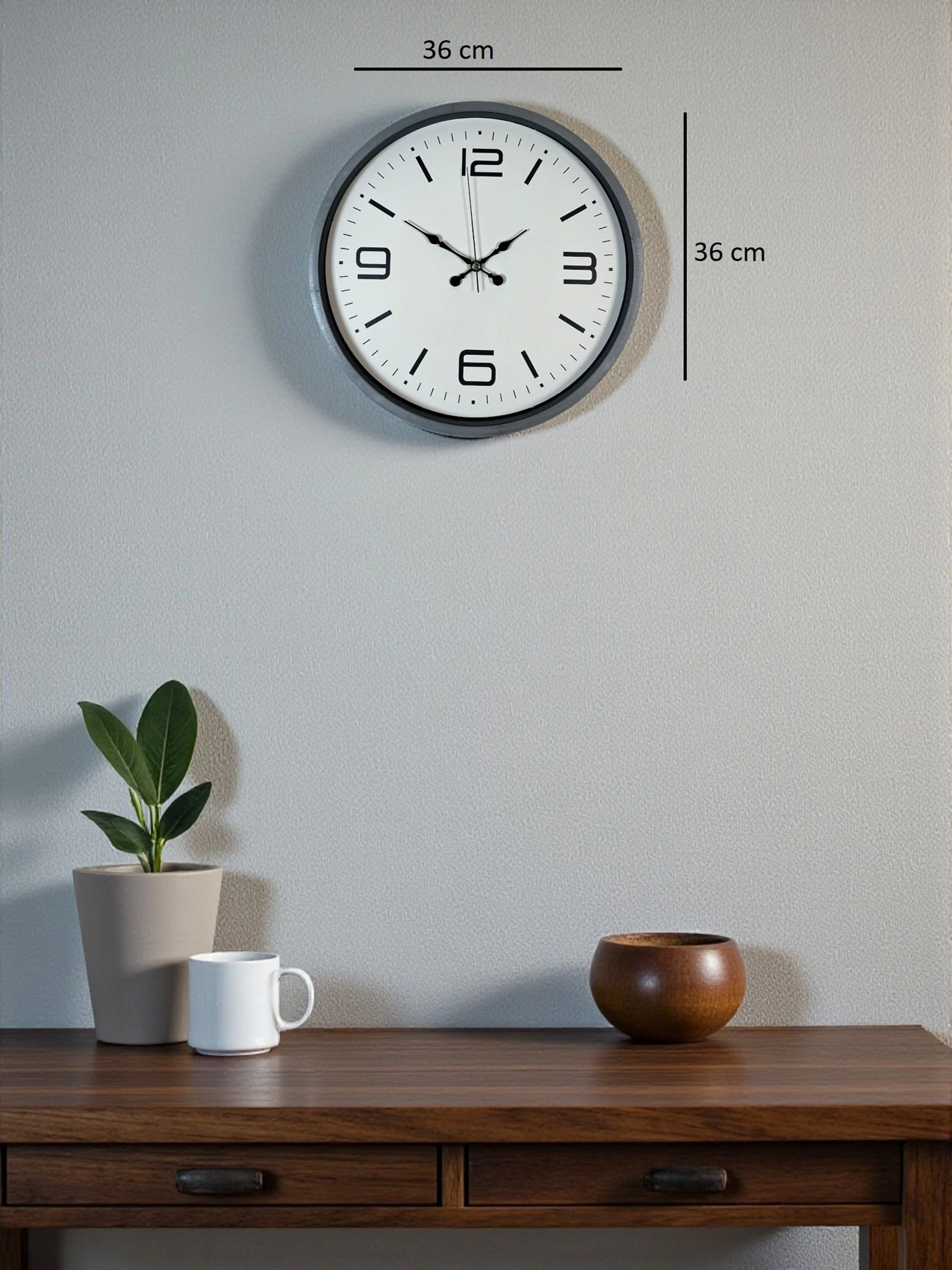 Modern ve minimalist çizgileri bir araya getiren bu 36 cm gri duvar saati, dekorasyonunda sadelik ve şıklığı bir arada görmek isteyen kullanıcılar için mükemmel bir tercihtir. Gri çerçevesi, endüstriyel, modern ve sade dekorasyonlarla kusursuz bir uyum sağlar. Büyük ve modern fontlu rakamları ile geniş beyaz kadranı, saatin uzağa yerleştirildiğinde bile rahatça okunabilmesine olanak tanır. Hem ev hem iş yerleri için ideal bir dekoratif tamamlayıcıdır.