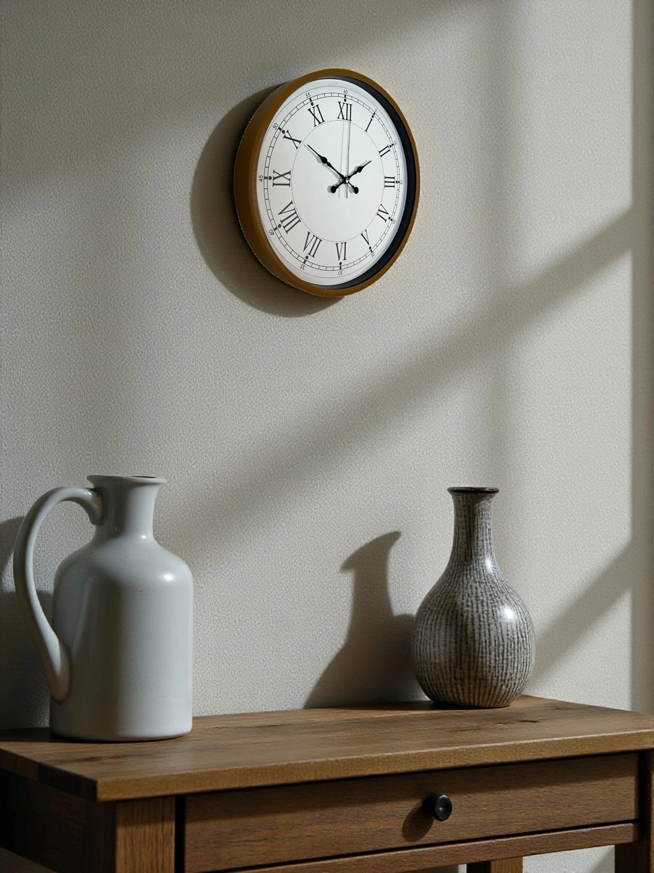 Beyaz zemin üzerine yerleştirilmiş siyah Roma rakamları, klasik saat görünümünü desteklerken aynı zamanda yüksek okunabilirlik sağlar. Akrep ve yelkovanın zarif tasarımı, çift halka detaylarıyla birleşerek saatin genel estetik bütünlüğünü güçlendirir. Saatin mekanizması sessiz akan saniye (akar saniye) teknolojisiyle çalışır; bu da saat çalışırken hiçbir tıkırtı sesi oluşmadığı anlamına gelir. Bu özellik, özellikle yatak odası, çalışma odası ve ofis gibi sessizliğin önemli olduğu alanlarda büyük avantaj sağlar.