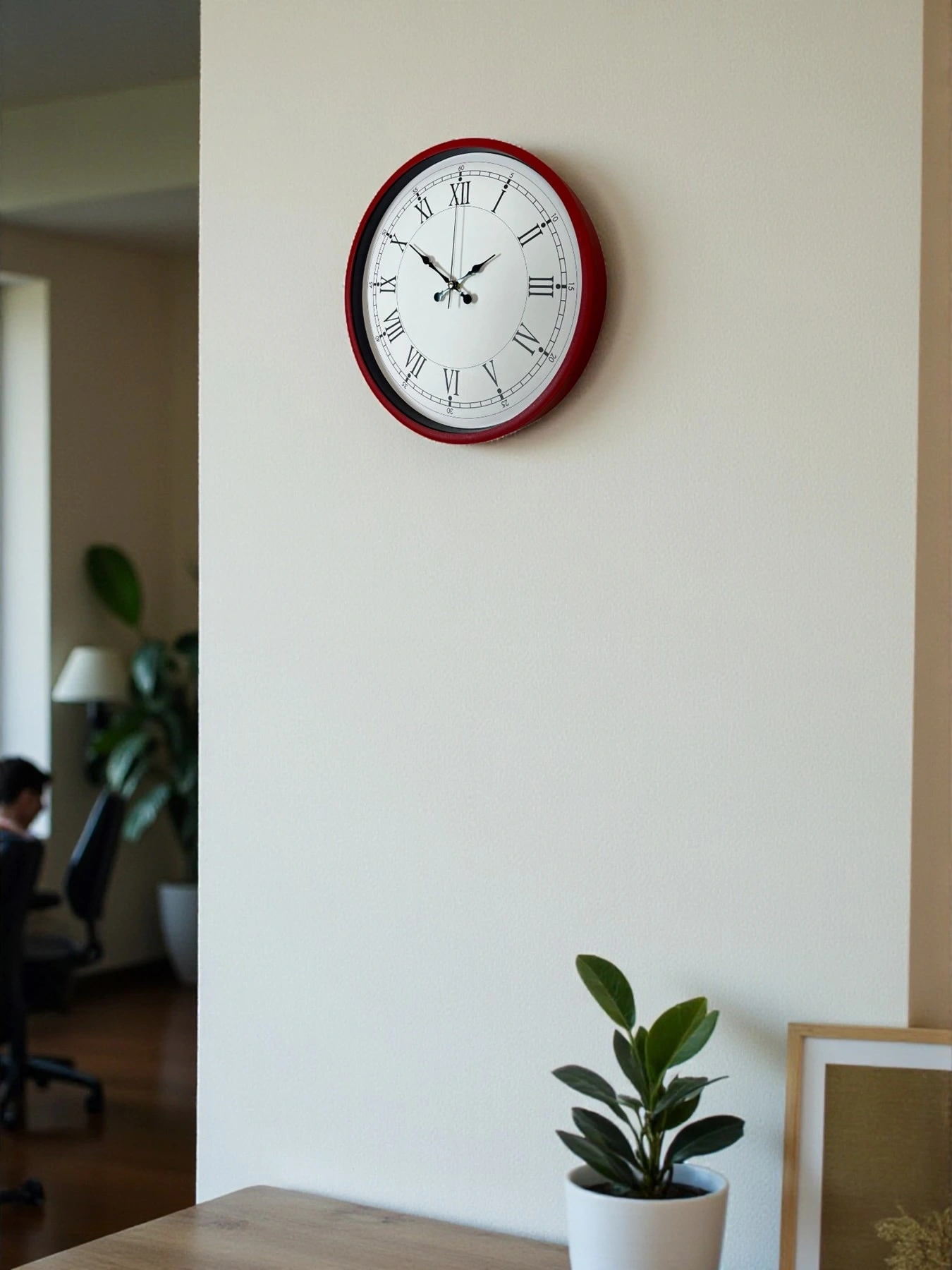 Modern enerjiyi klasik şıklıkla birleştiren 36 cm kırmızı duvar saati, bulunduğu ortama güçlü bir dekoratif vurgu yapmak isteyenler için ideal bir seçimdir. Kırmızı çerçevesi, ev veya iş yerlerinde dikkat çekici ve canlı bir atmosfer oluştururken, çift halka detaylı klasik kadranı ile hem nostaljik hem de modern bir görünüm sunar.