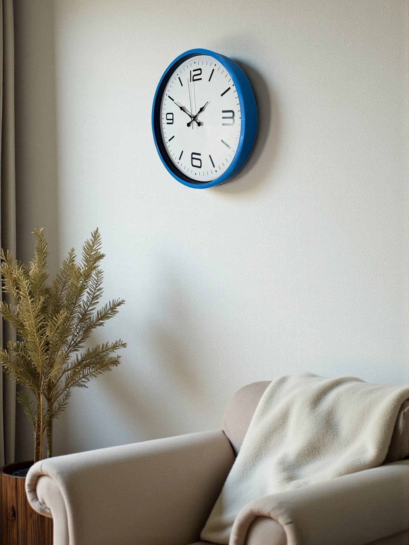 Dayanıklı plastik kasası hafiftir ve kolayca duvara monte edilebilir. Mavinin modern ve enerjik tonu, odalara canlılık katar; sade kadran tasarımıyla birleşerek hem işlevsel hem de dekoratif bir duvar aksesuarına dönüşür.