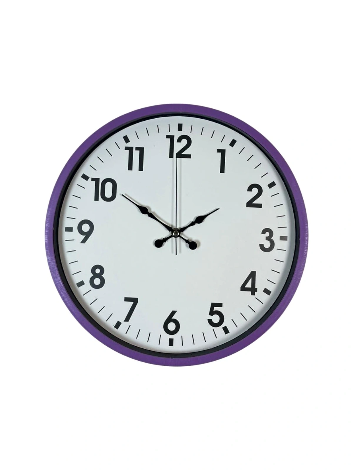 Modern çizgileri ve dikkat çekici mor çerçevesiyle bu 36 cm duvar saati, yaşam alanlarına hem enerji hem de estetik katan şık bir tasarımdır. Mor rengin zarif ve modern etkisi; salon, mutfak, ofis, genç odası, çalışma alanları veya dekoratif dokunuş isteyen tüm mekanlarda canlı bir atmosfer oluşturur. Büyük siyah rakamları ve sade beyaz zeminli kadranı sayesinde saat uzaktan dahi kolayca okunabilir.