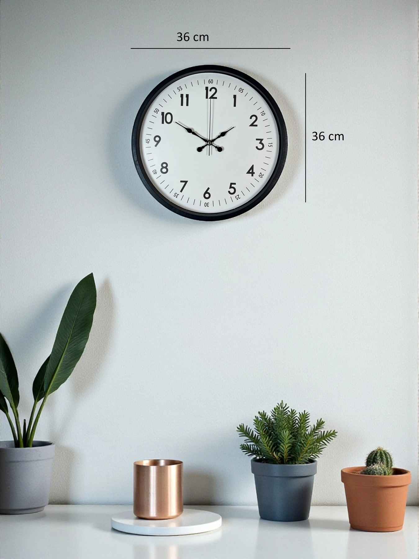 Modern ve sade tasarımıyla her dekorasyon tarzına uyum sağlayan bu 36 cm siyah duvar saati, hem estetik hem de fonksiyonel kullanım arayanlar için mükemmel bir seçimdir. Mat siyah çerçevesi, beyaz zeminli geniş kadranı ve büyük okunaklı rakamları ile saati uzaktan bile kolayca görebilmenizi sağlar. Kadrandaki ekstra dakika göstergeleri (05, 10, 15...) özellikle ofis, okul, çalışma ortamı ve hassas zaman takibi isteyen alanlar için büyük avantaj sağlar.