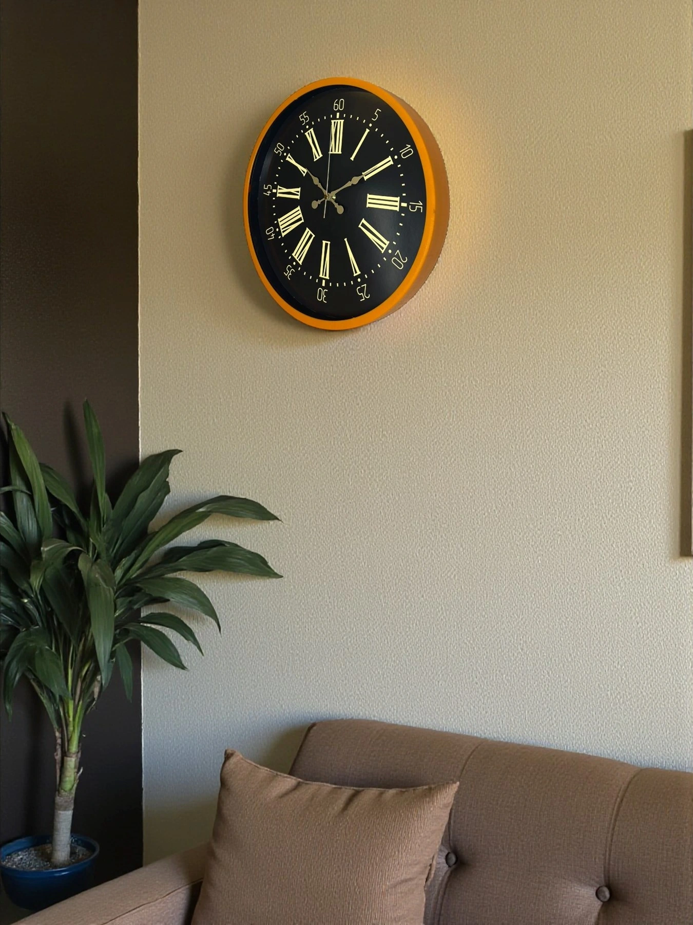 Yaşam alanlarına enerji ve modern bir görünüm katmak isteyenler için tasarlanan 36 cm Turuncu Duvar Saati, canlı renk çerçevesi ve şık siyah zemin üzerinde altın tonlu Roma rakamları ile dekorasyonda güçlü bir vurgu oluşturur. Turuncunun sıcak tonları, bulunduğu ortamda dikkat çekici bir estetik ortaya çıkarırken siyah kadranla oluşturduğu kontrast modern bir zarafet sunar.
