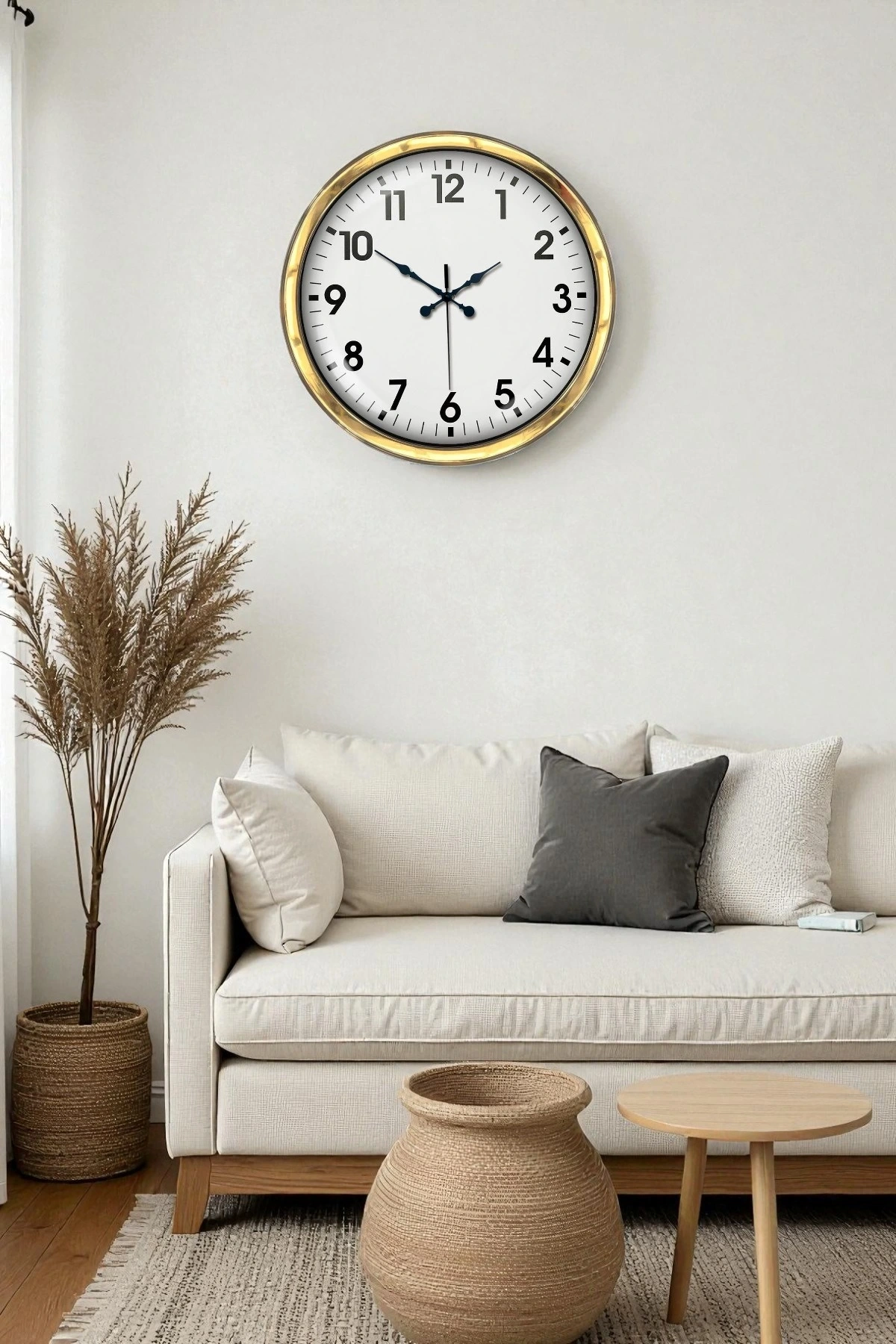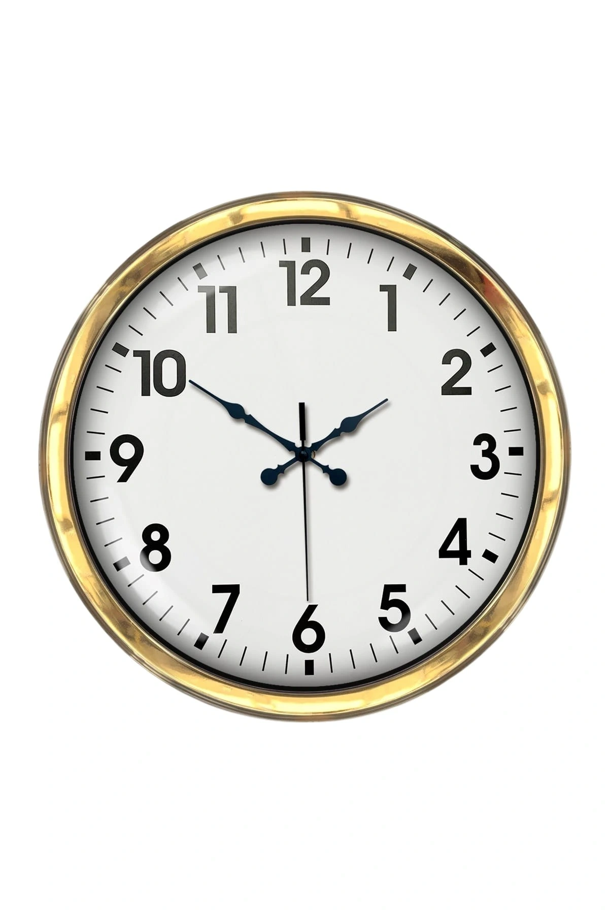 Bu 40 cm gold duvar saati, modern çizgilerin estetik bir yorumla sunulduğu şık bir tasarıma sahiptir. Parlak gold çerçeve, bulunduğu ortama anında premium bir hava katar. Beyaz fon üzerindeki siyah büyük rakamlar sayesinde saati uzaktan bile net bir şekilde okuyabilirsiniz.