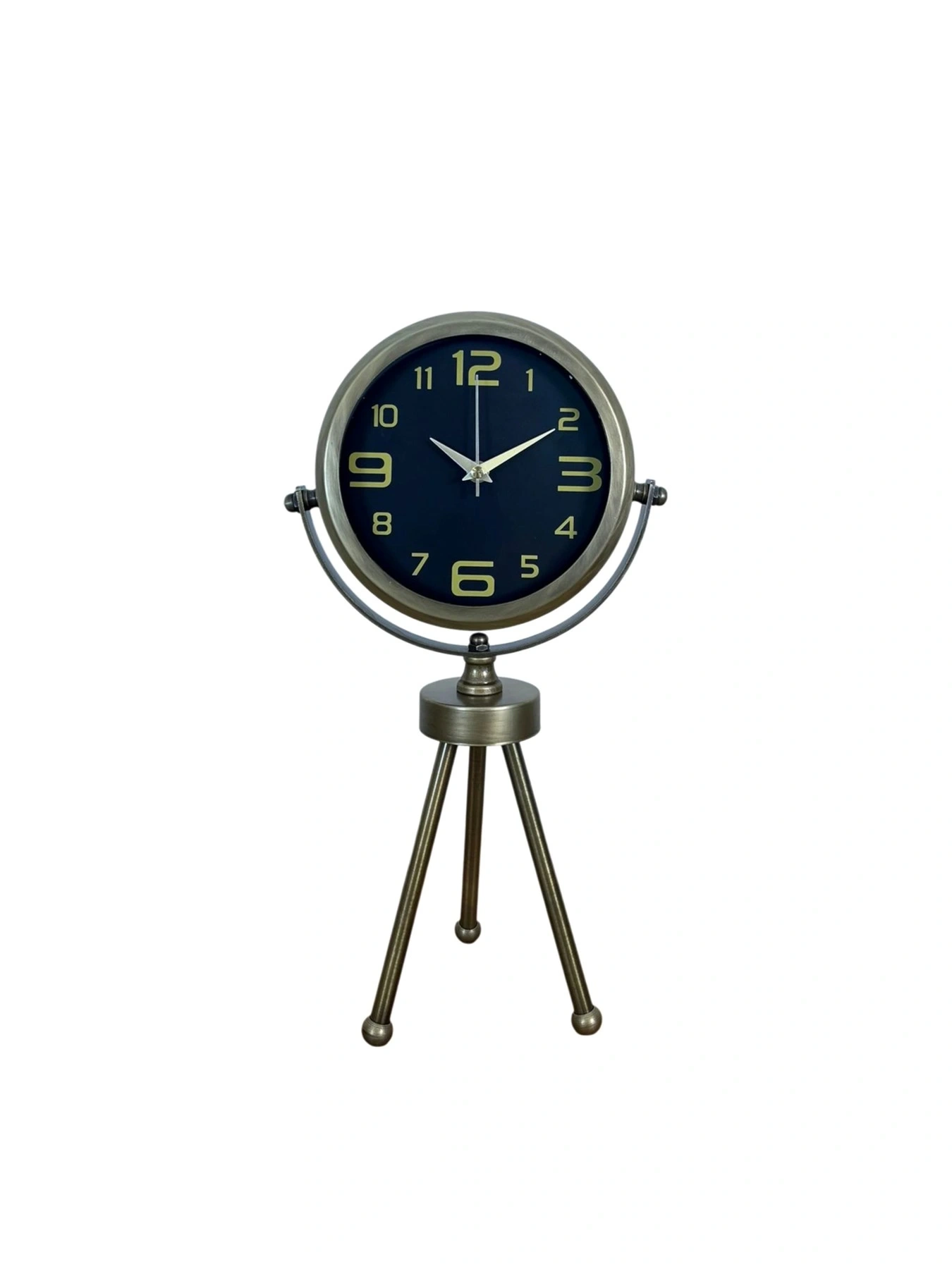 Modern çizgiler ile vintage detayları bir arada sunan bu 45 x 25 cm eskitme tripod masa saati, hem dekoratif hem de fonksiyonel bir ürün arayanlar için mükemmel bir seçenektir. Tamamen metal malzemeden üretilen gövdesi ve üç ayaklı tripod tasarımı, saate güçlü bir duruş ve uzun ömürlü bir dayanıklılık sağlar. Eskitme bronz kaplaması ise ürüne sıcak, elegan ve zamansız bir hava kazandırır.