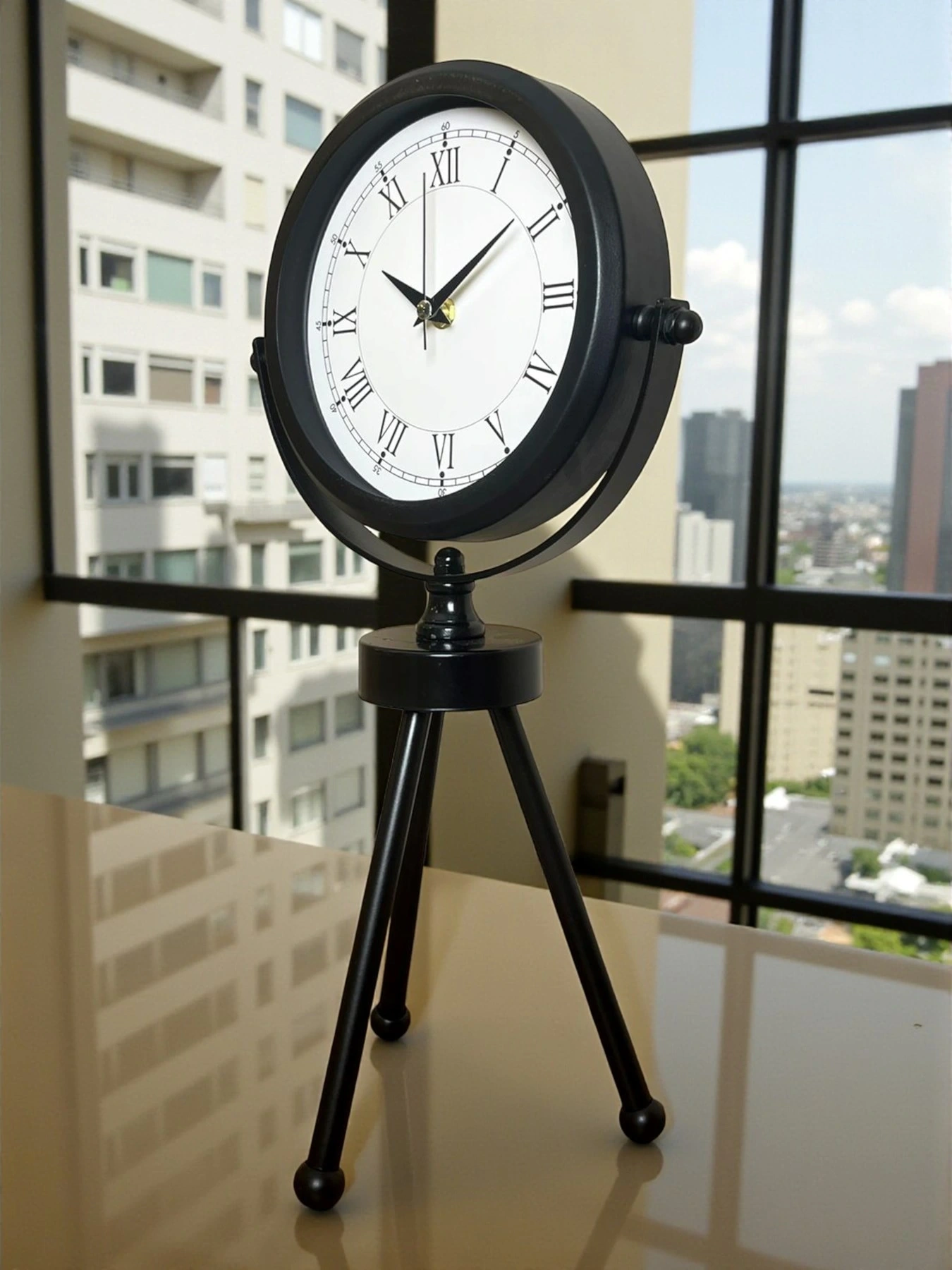 • Tasarım: Modern, minimal üç ayaklı masa / konsol saati